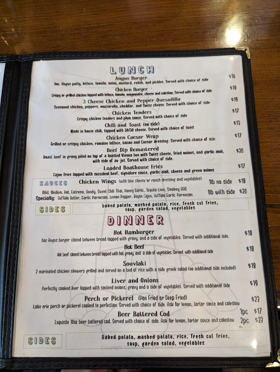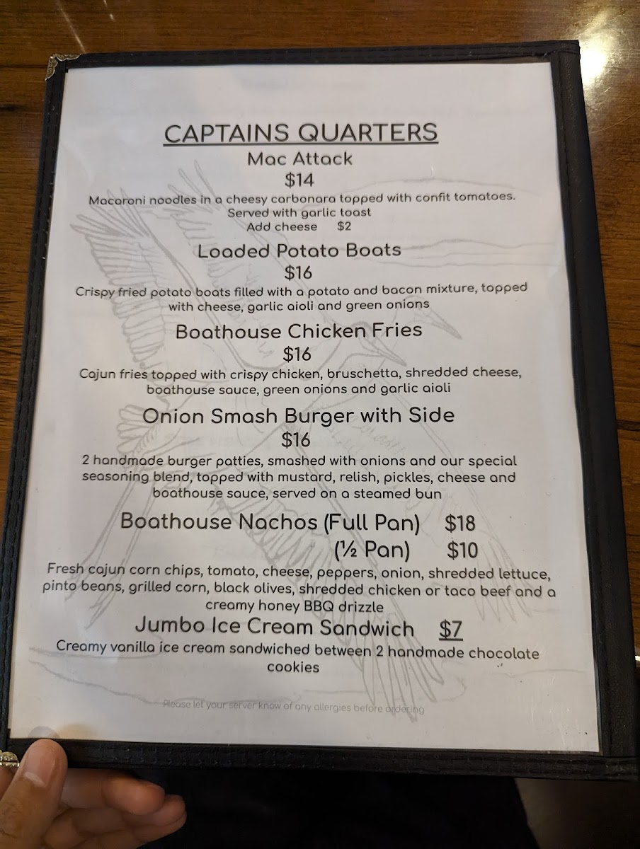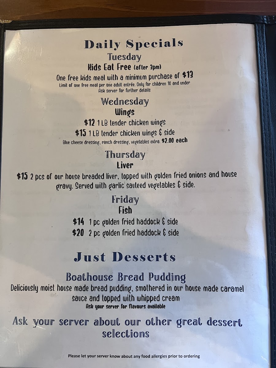 The Boat House Restaurant Menu